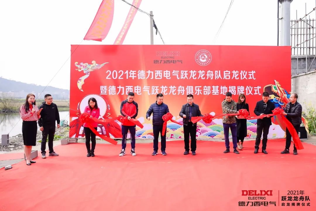 近日,德力西电气跃龙龙舟俱乐部基地正式举行揭牌仪式,温州市龙舟协会主席亓斌、温州市社会体育指导主任项君伟、乐清市龙舟协会会长吴阿将、德力西电气首席文化官胡晓春等人共同出席并剪彩揭幕,为德力西电气跃龙龙舟队新一年的征战之旅加油助力。