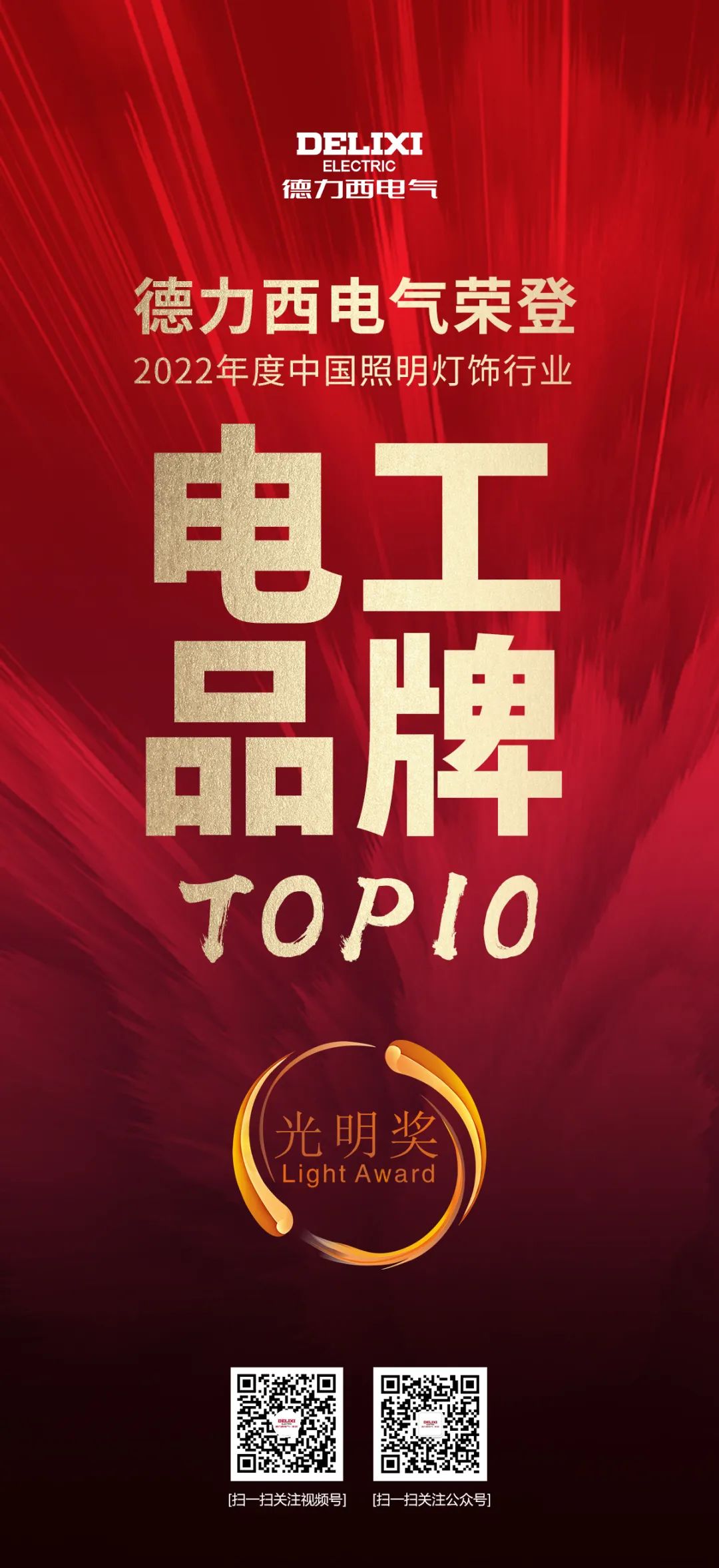 业界知名专家与领军品牌汇聚现场,共同探讨、展望2023年行业发展趋势,并为2022年行业突出贡献的企业与个人做出表彰。德力西电气被授予“光明奖2022年度中国照明行业电工品牌TOP 10”。