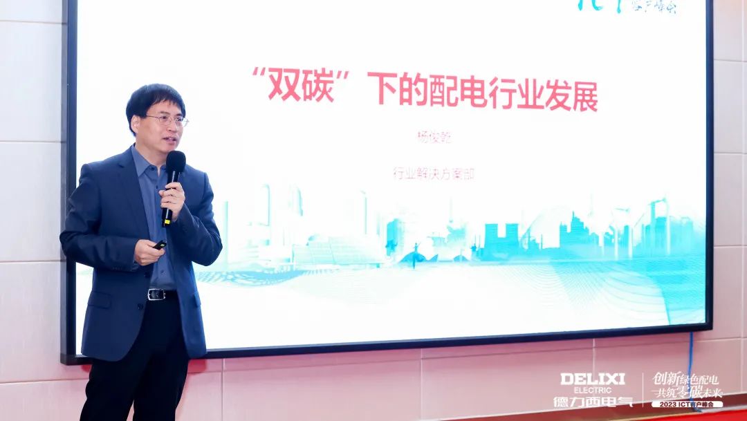 随后,德力西电气行业解决方案首席专家杨俊乾就“双碳下的配电行业发展”主题做了相关分享。在当前生产生活中,无论是在线购物还是生产控制等,都离不开信息与数据的输出。在数字化世界中,数据中心需要相当数量的处理和存储能力,而如何提高数据中心能效、减少碳排放、以及随之而来的低压电气挑战,也成为当下备受关注的议题。