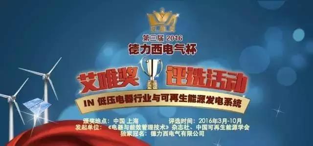 第三届2016“艾唯奖”以 “融智互联 创想未来”为主题,由荣获过中国出版政府奖的《电器与能效管理技术》(原《低压电器》)杂志社主办,中国电器工业协会通用低压电器分会、中国电工技术学会低压电器专委会、上海市电气工程设计研究会、华东建筑设计研究院、上海电器科学研究院等近30家学/协会、专委会、设计院支持并监督指导举办。旨在梳理低压电器&可再生能源行业品牌,树立行业标杆,见证并推动低压电器&可再生能源行业的品牌建设发展,推动品牌建设在产业进步中发挥力量,从而加快我国低压电器&可再生能源行业的高速可持续发展。