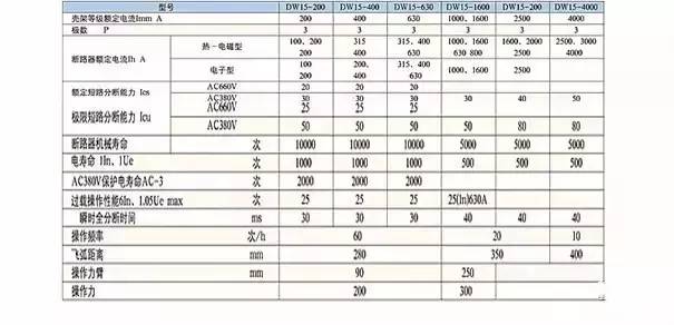 断路器DW15系列-2参考系数