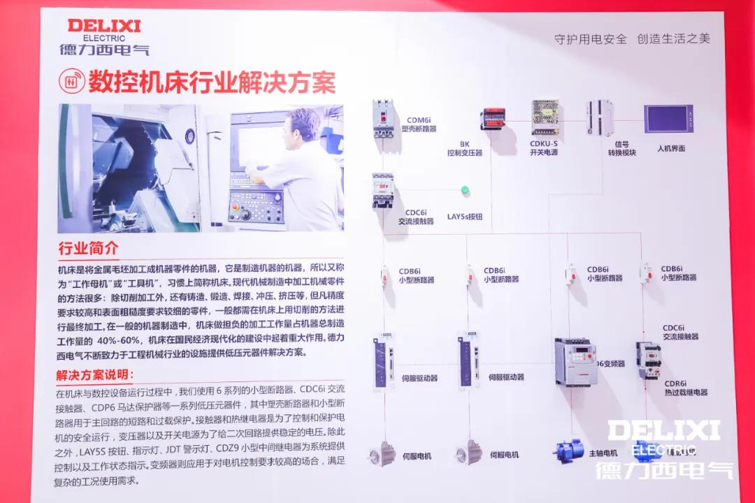 机床作为精密的仪器设备,对电路系统要求非常高。展会上,德力西电气展出了完备的机床解决方案,在实际应用中了种种问题:CDM6i系列塑料外壳式断路器在系统中对电路的短路和过载进行保护;CDC6i系列交流接触器用来控制电动机;BK系列控制变压器的使用,能保护电压持续稳定;CDP6系列电动机断路器对电动机实行短路、热过载和断相保护;更有LAY5s急停按钮、LAY5sZS指示灯、JDT50警示灯等品质卓越的产品助力数控机床发展。以上展品都受到了欢迎,享受了明星般的围观待遇,凭借其安全性和创新性的突出优势引发行业客户的浓厚兴趣和认可。