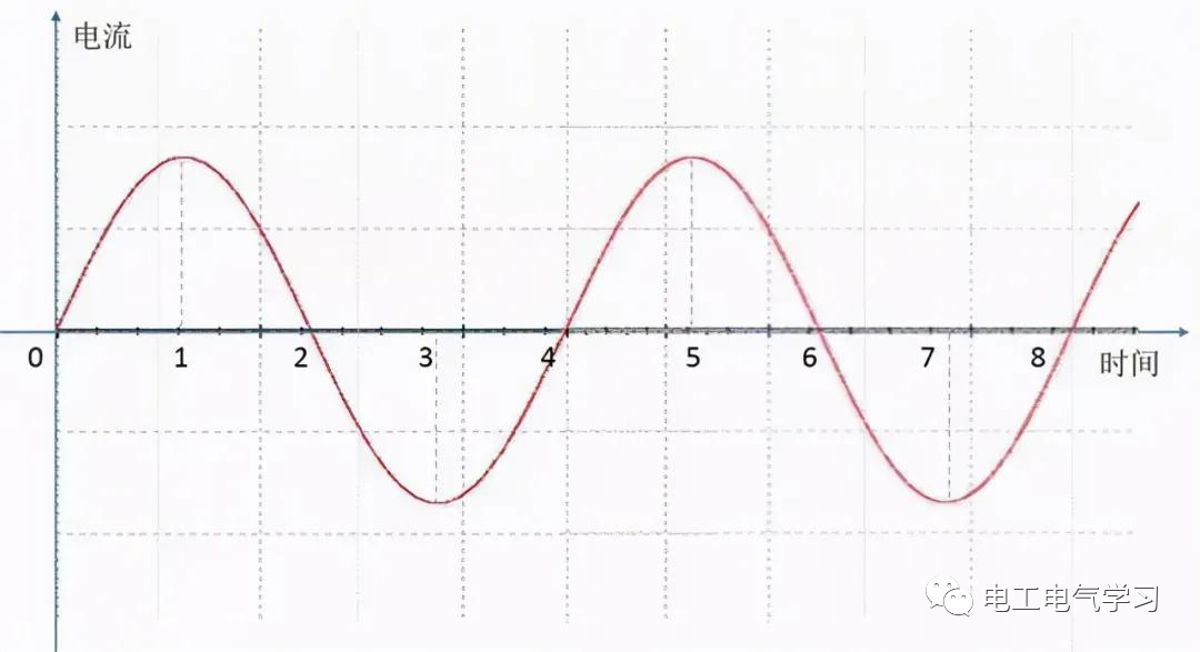 2-3 这个时间段,如图中的电流已经逐渐变成了负数,而且这个值越来越小,当到达3这个时刻的时候,电流已经到最低数值的峰值。