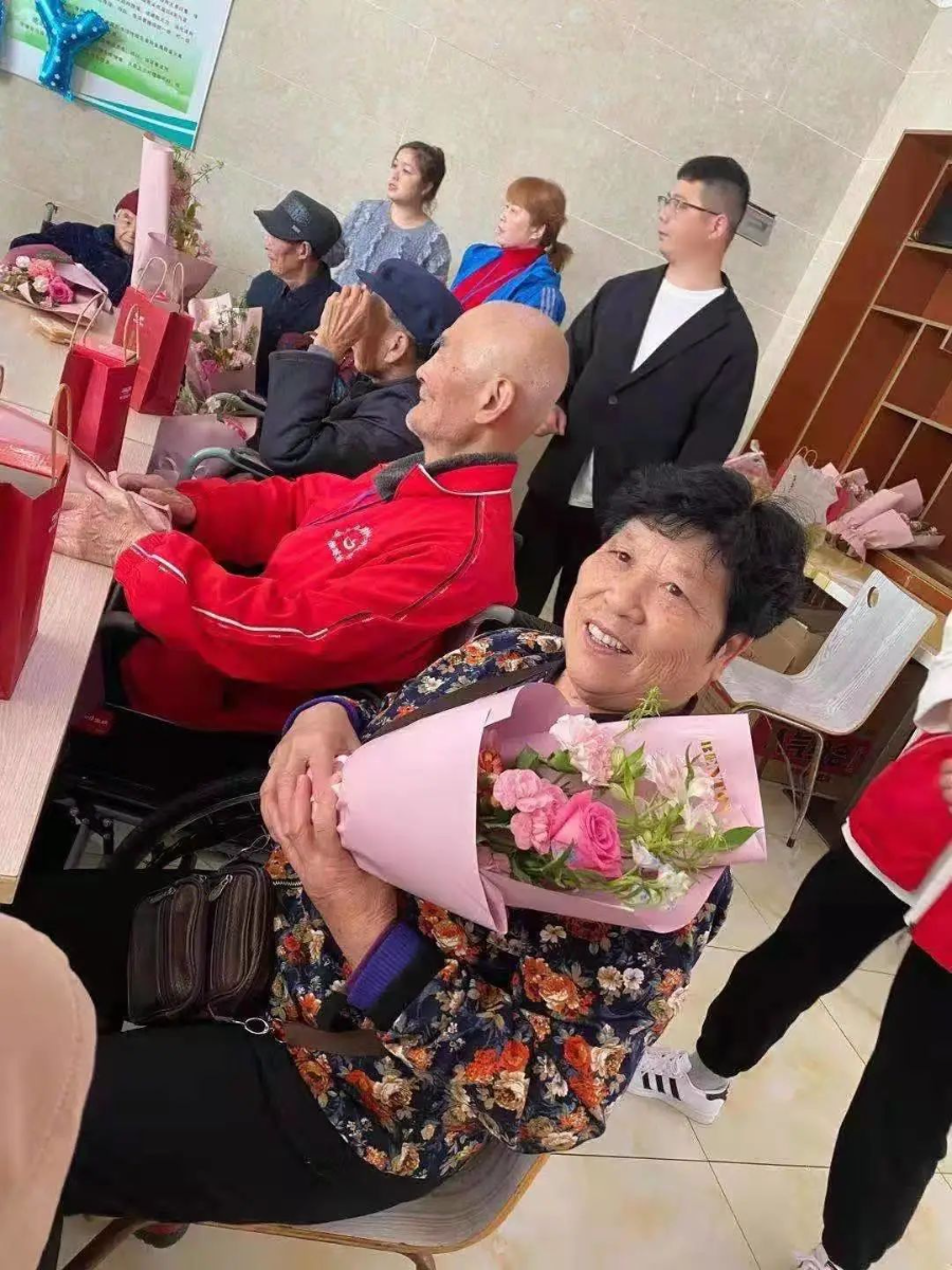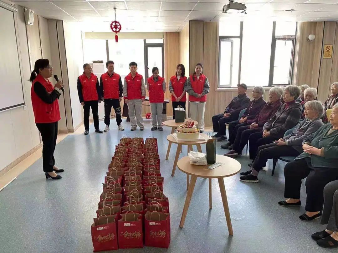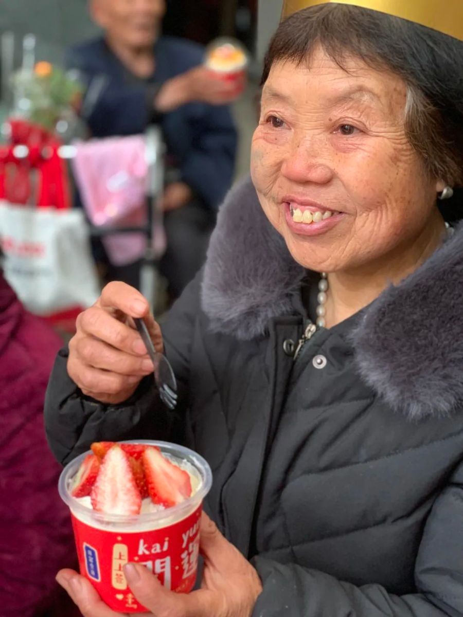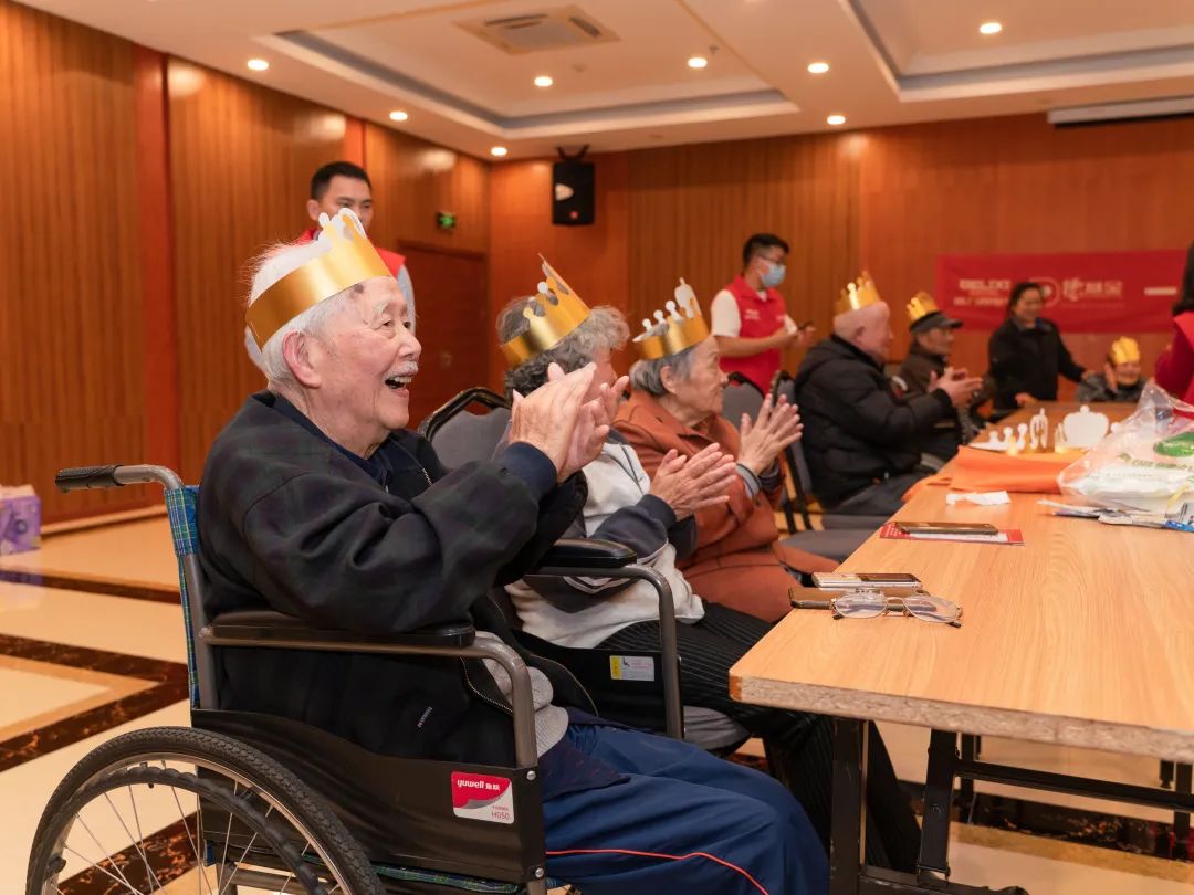 在本次活动中,志愿者们为各地老人们准备了丰盛的礼物,有鲜花,有蛋糕,有长寿面...生日会活动现场热闹又欢乐,志愿者与老人们一起聊天、唱歌、做游戏,惹得生日趴的主角们都开心得合不拢嘴了。