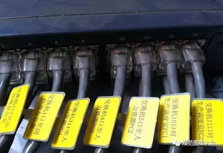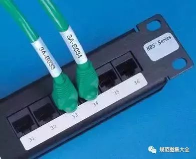 配线面板标识主要以平面标识为主,要求材料够经受环境的考验,且符合RoHS对应的环境要求,在各种溶剂中仍能保持良好的图像品质,并能粘贴至包括低表面能塑料的各种表面。标签应打印,不允许手工填写,应清晰可见、易读取。所有标签应保持清晰、完整,并满足环境的要求,如图所示。