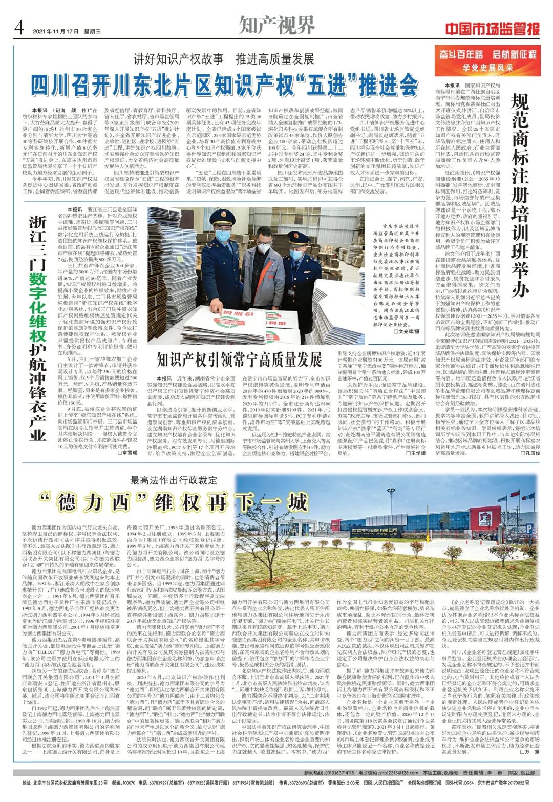 11月17日,国家市场监管总局机关报《中国市场监管报》刊发重磅报道,详述“两个德力西”的是非原委,呼吁维护企业合法权益和公平竞争的市场秩序。
