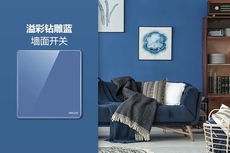 大面积的蓝色墙面装点溢彩钻雕蓝墙面开关