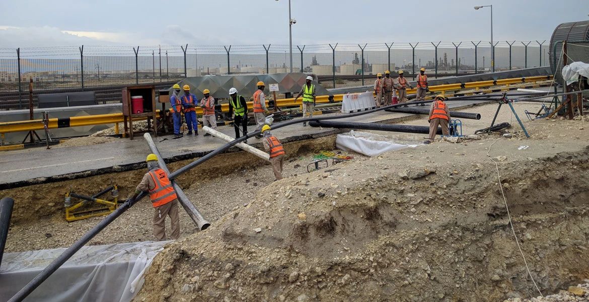 3、电缆在敷设的时候不能摔、砸,死拉硬拽,否则护套容易开裂,在拐弯、斜坡等容易受力处应采取一定的防护措施,必要时用暖风机等设备在拐弯等容易受力处进行均匀加热。