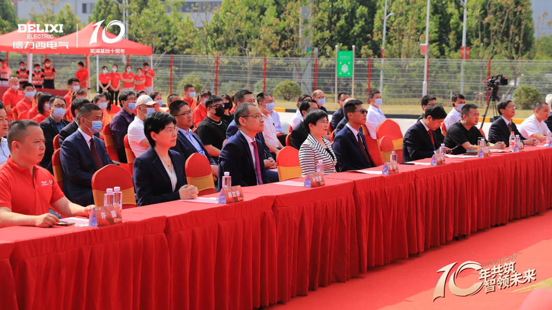 值此德力西电气(芜湖)有限公司成立十周年之际,芜湖二期工厂也盛大揭幕,中共芜湖市湾沚区委书记殷琼女士,湾沚区委副书记、区长李国柱先生,湾沚区人大常委会主任杨文玲女士,湾沚区政协主席刘晓明先生,湾沚区委常委、统战部长陈刚先生,区委常委、常务副区长马荣先生,湾沚区副区长、新芜开发区党工委书记、管委会主任后向前先生等政府领导出席了仪式。