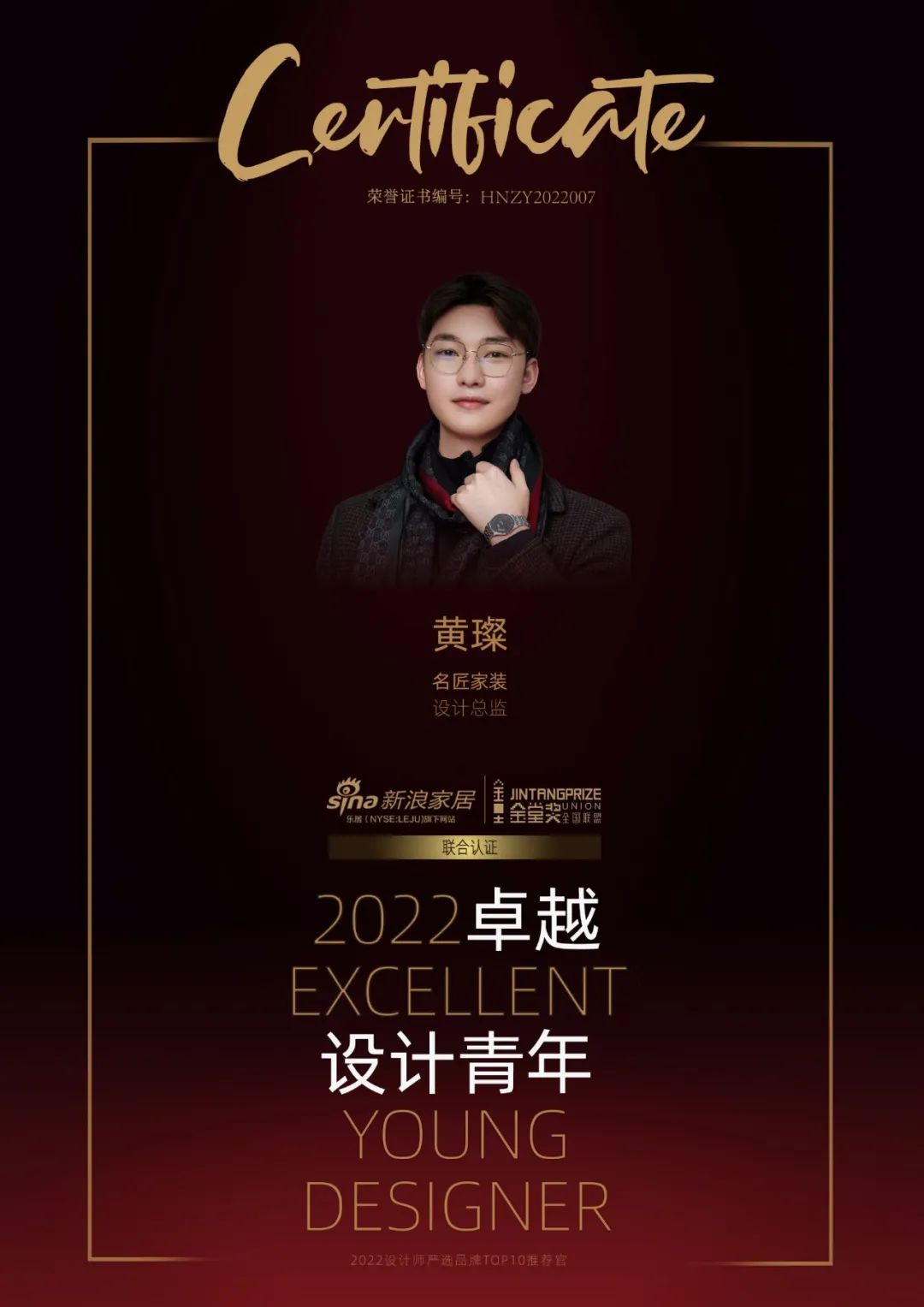 中国设计的青年力量,已经完成了自我突破的变革期,转变为引领中国生活方式和设计潮流的先锋倡导者——“2022卓越设计青年”。由新浪家居和金堂奖全国联盟发起,是设计业界最具传播价值的年度先锋荣誉,其成员由全国设计领域青年精英设计师组成,新浪家居与金堂奖联名认证。